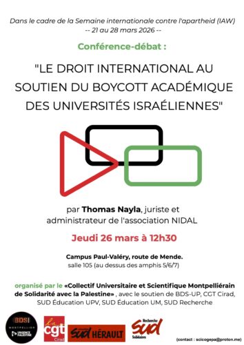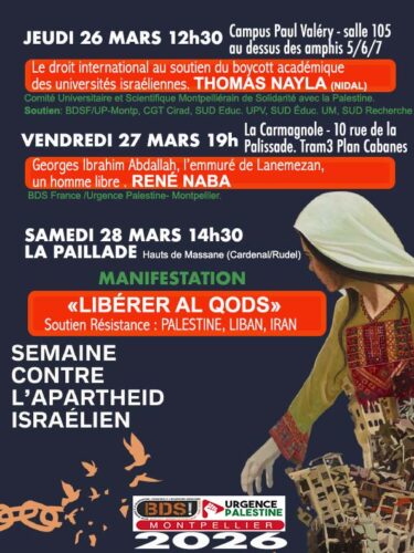 Montpellier : Semaine internationale contre l’apartheid israélien