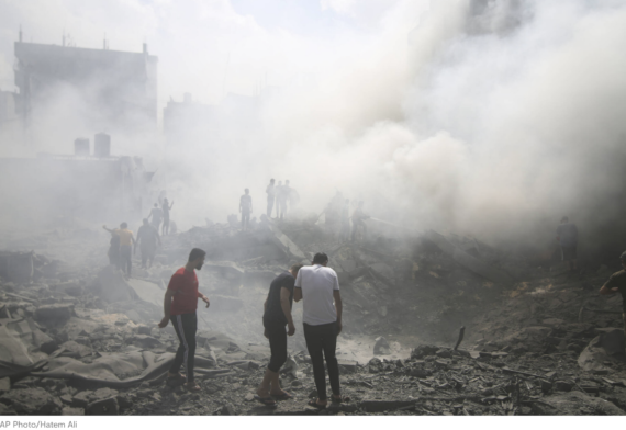 VENDREDI, Israël a ordonné à la population de la moitié nord de la bande de Gaza assiégée d’évacuer vers le sud, avertissant qu’il allait bientôt intensifier son attaque sur le haut de la bande de Gaza. Cet ordre a amené plus d’un million de personnes, dont la moitié sont des enfants, à essayer désespérément de fuir sous la poursuite des frappes aériennes, dans une enclave emmurée où aucune destination n’est sûre. Comme l’a écrit aujourd’hui depuis Gaza le journaliste palestinien Ruwaida Kamal Amer, « des réfugiés du Nord arrivent déjà à Khan Younis où les missiles n’ont jamais cessé et nous n’avons plus de nourriture ni d’eau ni d’électricité ». L’ONU a averti que la fuite des gens du nord de la bande de Gaza vers le sud allait entraîner « des conséquences humanitaires dévastatrices » et « transformer ce qui est déjà une tragédie en un désastre ».